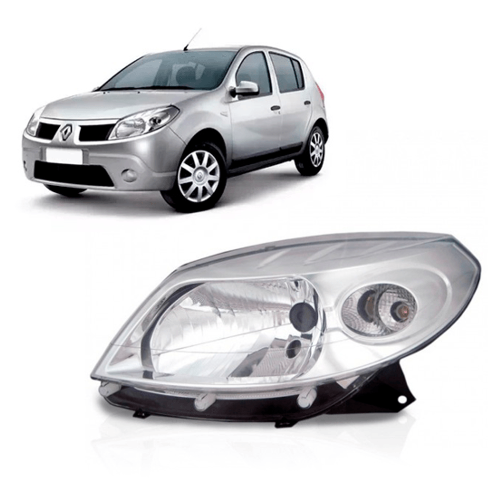 Farol Sandero 2008 até 2011 Lado Esquerdo Cromado